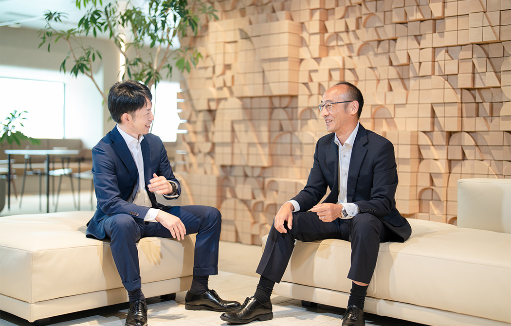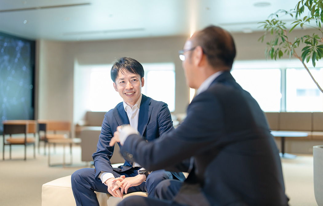 地域経済を支える信用組合というお客様に寄り添い、確かな信頼関係を背景に「攻め」と「守り」の価値提供を行う信組営業担当の二人。自分たちの仕事が日本の未来を担っているという実感を胸に、社会への貢献を果たしています。