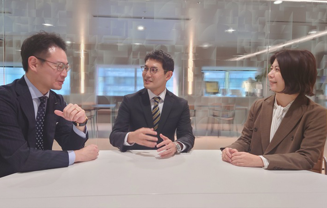 2023年にNTTデータに経験者として入社した孔と石山、2008年に新卒入社した宮川は、共にユーティリティ事業部で既存案件の拡大と新規案件の発掘に携わっています。