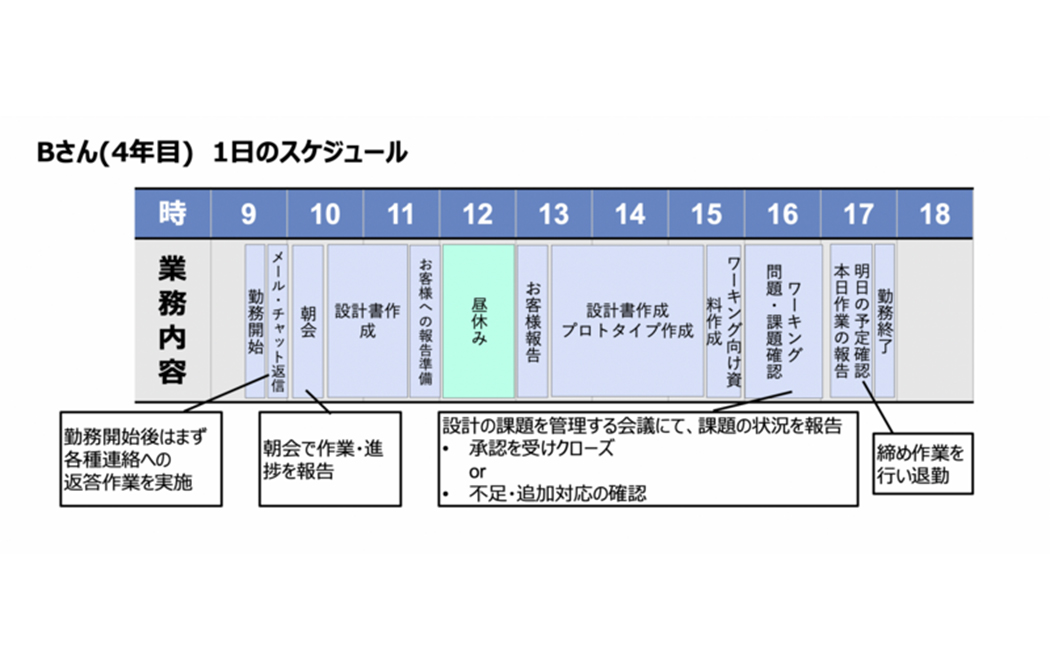佐藤 「現在私が取り組んでいる事例を挙げると、第二新卒のメンバーとバディを組み、私が現場のリーダー、そのメンバーが作業指示を受けて実際の開発を行うという形で連携しています」