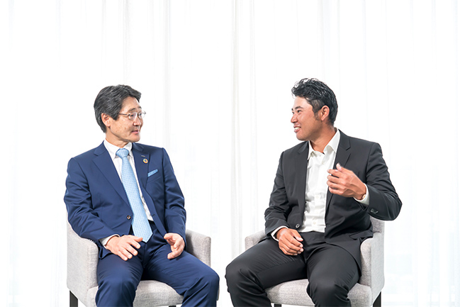 Matsuyama: To your point about improving skills, the use of digital technology is growing among professional golfers. For example, there are ballistic measurement devices and apps now that can analyze your swing. In the past I had relied on my senses to make adjustments. Now I try to be conscious of the gap between what my senses tell me and what the data shows. It’s still quite difficult.