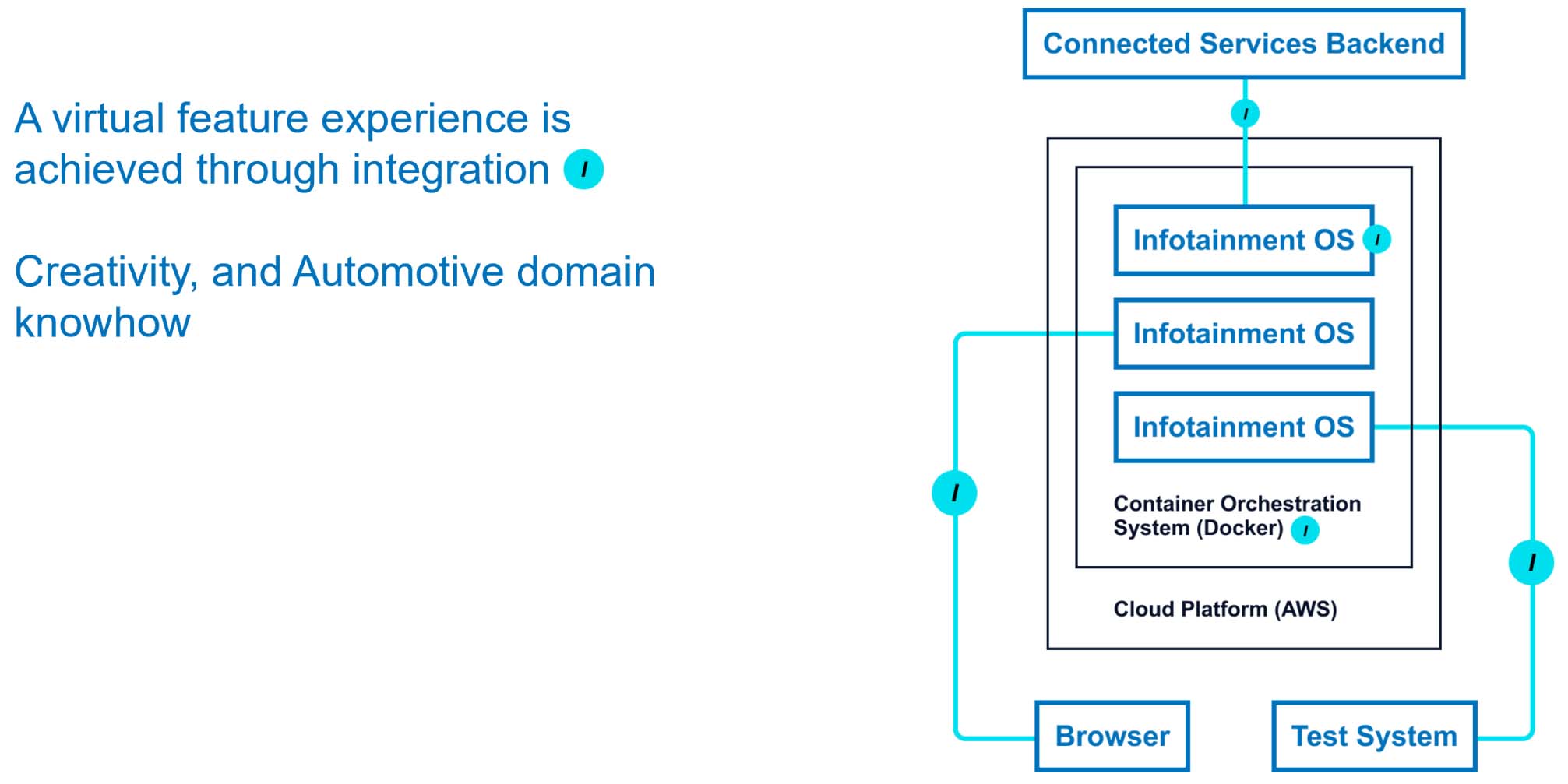 The idea was officially born by starting a customer PoC. We enabled our client's infotainment system to be executed in the cloud, followed by a process of full integration of the connected backend. In addition, testing frameworks and the possibility to select the needed variant, and control the HMI from a web browser have been added as features.