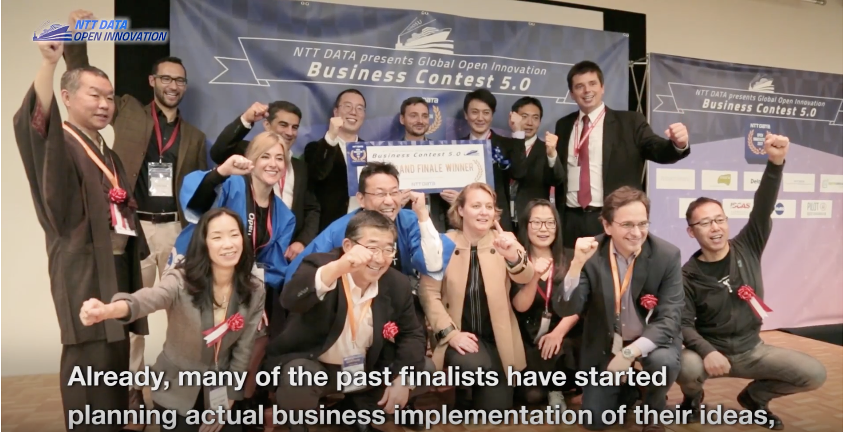 NTT DATA has been hosting open innovation contests twice a year since 2014. The last global Contest 5.0 hosted regional semifinals in 10 cities of nine countries to further emphasize the global aspect of the event for the first time, and received more than 400 proposals all over the world. 10 finalists, who are the winners of each regional semifinal, then competed at the Grand Finale in Tokyo in March, 2017. The Grand Finale Winner, Barcelona-based Social Coin, is already undergoing intensive business development. In addition to the Grand Finale Winner, NTT DATA are engaging with 6 other finalists to discuss potentials for co-creating innovative businesses. Please refer to video below.