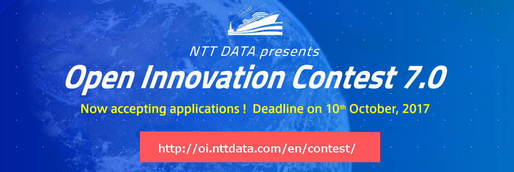 NTT DATA Corporation (NTT DATA) will host its 7th Open Innovation Contest and started accepting applications through the Contest’s official website: http://oi.nttdata.com/en/contest/(External Link). Regional contests will be held at 15 locations in fourteen countries - Tokyo, Melbourne, San Francisco, Toronto, Santiago, Sao Paulo, London, Madrid, Barcelona, Lisbon, Milan, Tel Aviv, Mumbai, Singapore and Guiyang - and the winners will be invited to the Grand Finale in Tokyo in March of 2018. The Grand Finale winner will receive a three-month in-kind contribution to support the development of the proposed new business.