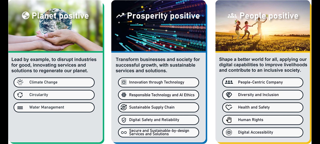 Our goal is to use technology for good to help create a more affluent and harmonious society. We recognize the importance of embedding sustainability across our company, and we are making significant investments to address sustainability challenges for ourselves and our clients.