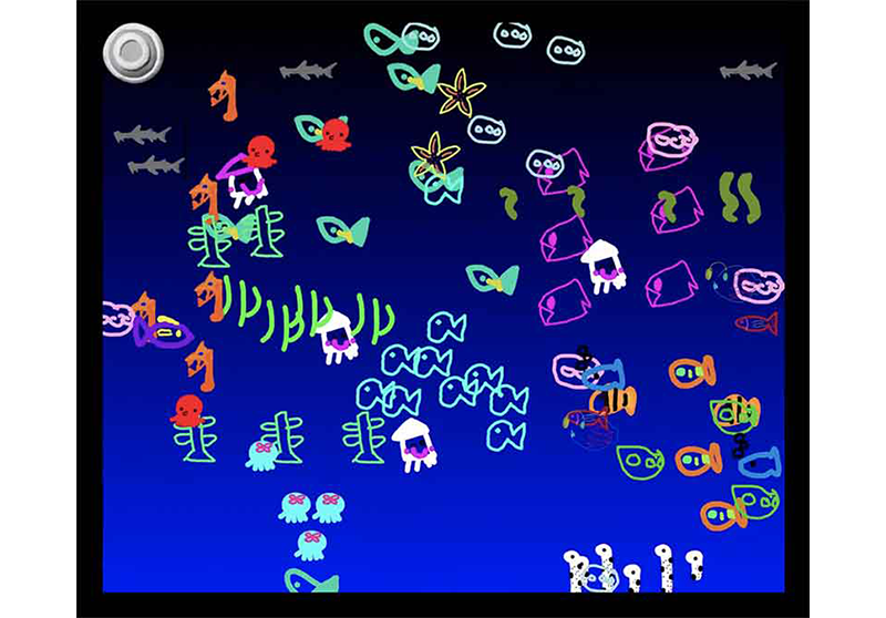 それぞれがつくったお魚をみんなの海で泳がせよう