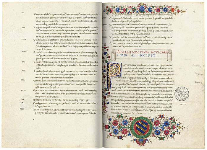 『アッティカの夜』全20巻は、ゲッリウスがアテナイの田園部のアッティカに滞在した冬の夜の間に文献資料の収集を始め、長期間作業を続けて、自分の子どもたちのためにまとめたものです。第8巻を除く19巻が現存しています。主題はきわめて広く、歴史、哲学、法律、文学、文法、言語、宗教、自然科学などあらゆる分野にわたっています。ギリシアやローマの古い作家たちの多くの資料を含み、これによってのみ知ることのできる作家も多い貴重な文献です。アウグスティヌスやエラスムスが愛読したほか、19~20世紀の劇作家ジョージ・バーナード・ショーの『アンドロクリーズとライオン』もこの書から題材をとっているように、後世の文学の進化に大いに寄与しています。