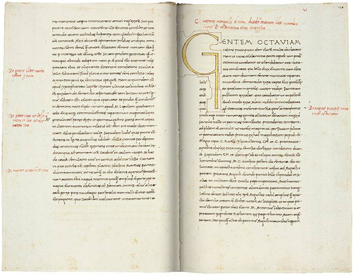 『ローマ建国以来の歴史』は、ローマ建国から大ドルススの死(紀元前9年)までを記述した、全142巻に及ぶ、ローマ国民を称える記念碑的著作です。40年余りを費やして書き上げましたが、現存するのは第1巻~第10巻および第21巻~第45巻の35巻(一部欠)です。失われた部分の内容は、伝えられている4世紀のものとされる各巻の「綱要」(第136・137巻を除く)などによって知ることができます。