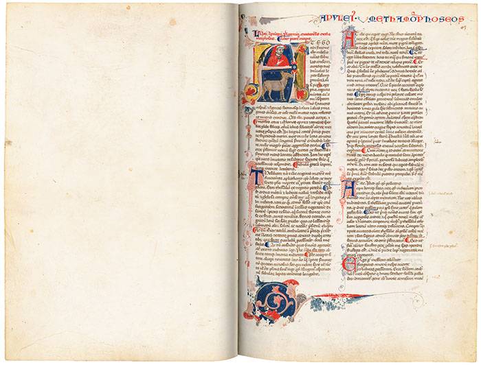 ルキウス・アプレイユス(123頃−170以降)は、北アフリカのマダウロスの裕福な家に生まれた、ローマ帝政期の小説家、哲学者、修辞学者です。修辞学、哲学などを修めた後、ギリシアや小アジアなどを旅行し、神秘宗教や魔術に接しました。しばらくローマに滞在し、結婚して北アフリカのカルタゴに居を構えて以後は高名な人物として市民の敬愛を受けながら過ごしました。著作には、結婚をめぐり訴えられた際の反論『弁明』や、自身の演説を抜粋した『フロリダ』のほか、『ソクラテスの神について』、『プラトンとその教説』などがあります。
