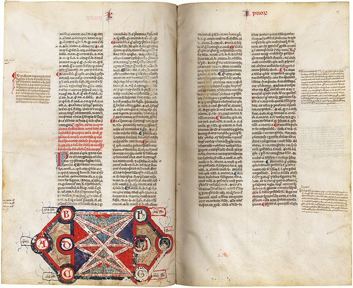 『大著作』は、教皇クレメンス4世の求めに応じて執筆された、7部から構成される著作です。当初は百科全書的著作を構想していましたが、時間的要因などからそれまでに書きためておいたものに基づき書物としての体裁を整え新たな一書とし、その要約・付記版となる『小著作』、『第三著作』とともに1年ほどで完成させました。既成の権威に寄りかからずキリスト教の真の知恵を追究することを支持し、その内容は神学、哲学、言語学、数学、光学、経験学、道徳哲学に及びます。本書は、ベーコンの学問に対する先駆的な思考を示すものであり、未来を切りひらくための画期的な道標となりました。
