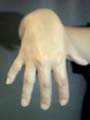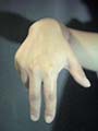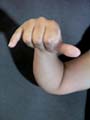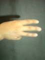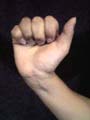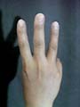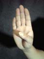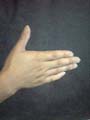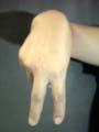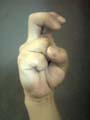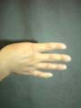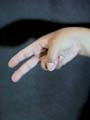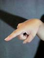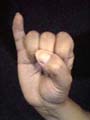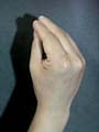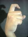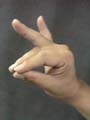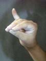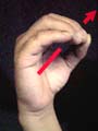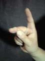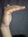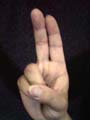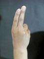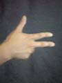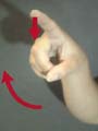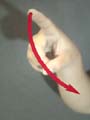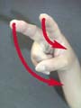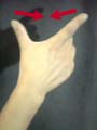 人さし指と中指の2本で手首だけを動かして、カタカナ「リ」を空書きします