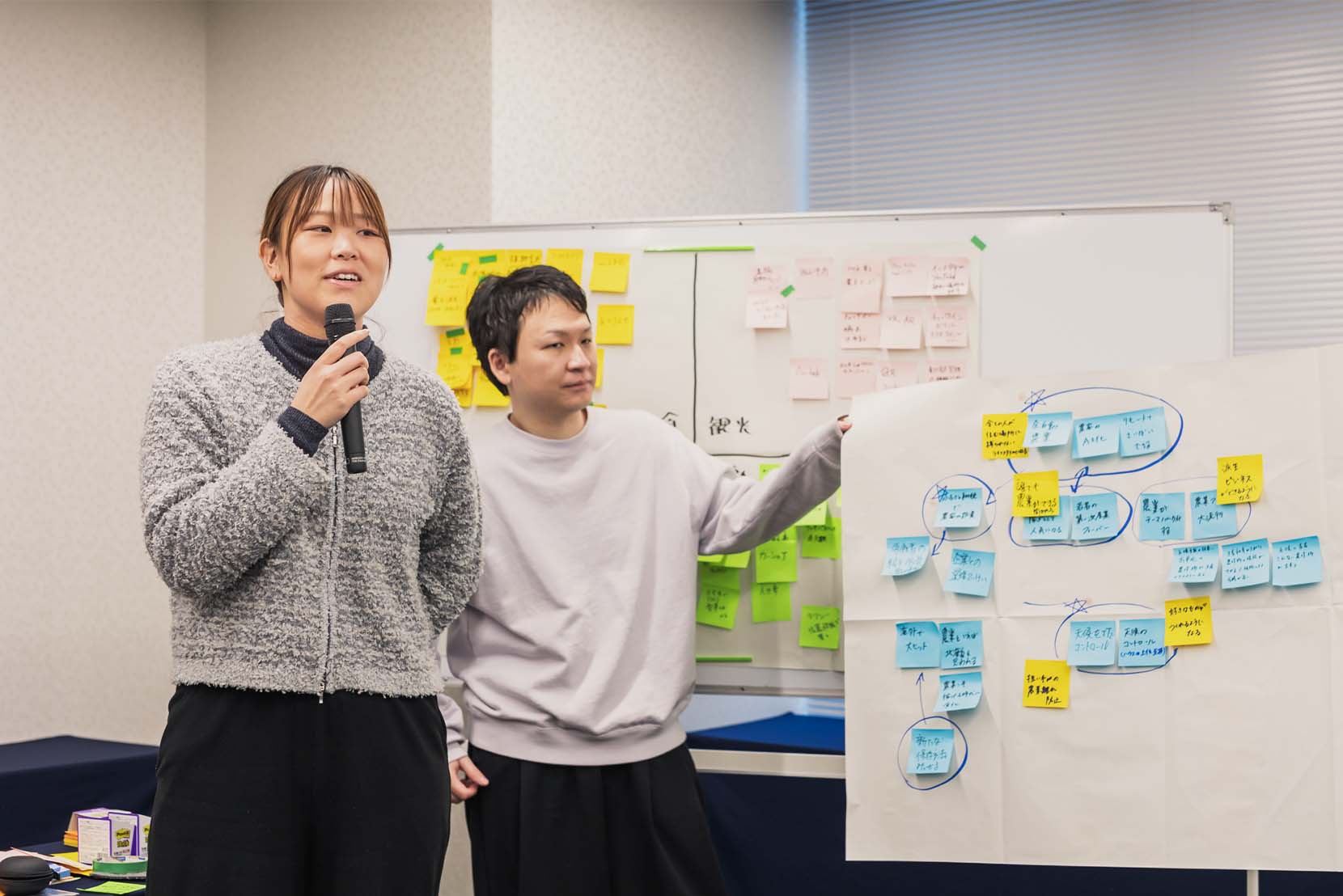 それぞれの事業部でお客様への貢献とプロジェクトの収益化に真摯に向き合う日々から離れて、地域の未来を想像し、会社の存在意義や事業活動・企業活動を通じた貢献について考えを深めるために「2040年の北海道ってどうなっている?」と問いかけられても多くの人は考えてみたことがないし、何から話していいのか分からない。けれど、「空飛ぶクルマがすでにあるかもしれないよね」という一言から、みんなが一斉に考え始めて活発に意見を交わすことができる。チームワークが生まれて、緊張していた若手社員の表情が和らぎ伸び伸びとプレゼンテーションができる。こういった変化をまさに見たかったですし、自ずと事業においても思考や行動が変わるという期待感でワクワクしています。