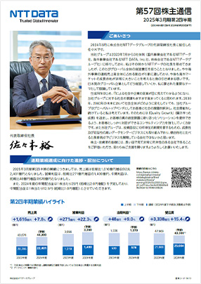 NTTデータグループの株主の皆様へ、経営方針、最近の動向、業績などについて分かりやすくお伝えします。