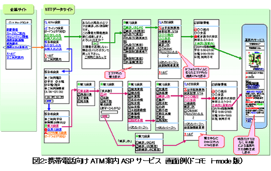 - 企業毎の独自のATM情報も、ユーザー向けに内容をカスタマイズして表示することが可能。このASPサービスは、特に外出先で有効であると考えられる携帯電話向けのWebサービスとして開始します。