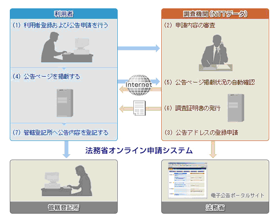 | (別紙) 電子公告調査・証明サービスは、企業・各種法人様等の電子公告がホームページ上に掲載されている期間、内容が改ざんされることなく掲載されていることを調査し、掲載期間終了後には、その調査結果を証明書として発行するサービスです。 |