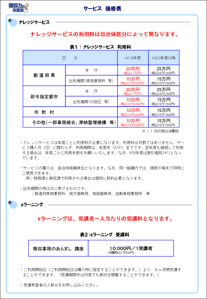 【別紙2:サービス価格表】