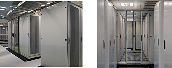 上図は、アイルキャッピングの有無によるサーバラックの温度変化をシミュレーション結果ですが、アイルキャッピングなしの場合、サーバラックからの排気が一部、コールドアイル側(上図のラック間の通路)に回り込んでおり、一部のサーバラックの温度が上昇していることがわかります。一方、アイルキャッピングを行った場合、コールドアイルの温度はほぼ一定に保たれています。