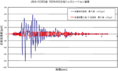 兵庫県南部地震の入力を最大1/10程度に低減できます。新潟県中越地震の地震波にも対応しております。