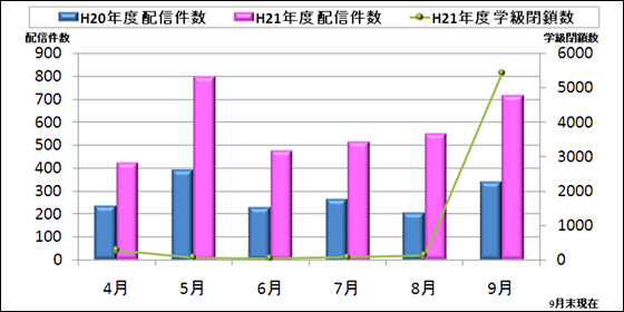 今年5月の新型インフルエンザ発生時、学校連絡網として機能しました。導入している関西のある中高一貫校(生徒数1,500名)では、学校閉鎖を決定し「FairCast」を使って全保護者に連絡したところ、1人の生徒も登校しなかった、という事例があります。この学校には遠隔地からも生徒が通学しており、従来の電話連絡網だけでは対応できなかっただろう、と関係者から高い評価をいただいています。また、学校などで2学期が始まった9月以降、学校・学級閉鎖が相次ぐ中、「FairCast」を利用して連絡している学校が増えており、配信数が増えています。