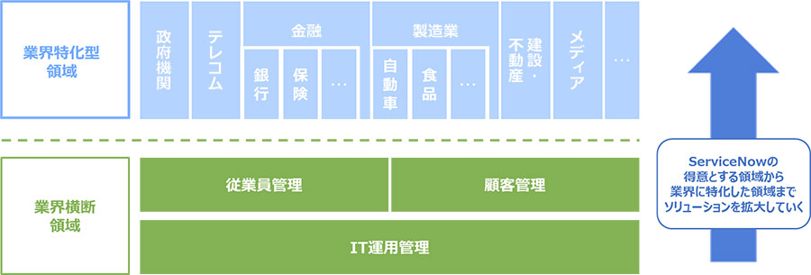 2019年7月にServiceNowの販売を開始して以来、公共社会基盤分野、金融分野、法人分野と業界を問わず多くの案件にServiceNowの導入やシステム運用の集約を全社として取り組むことでノウハウを蓄積してきました。 - 2.ServiceNowを実行基盤とするソリューション