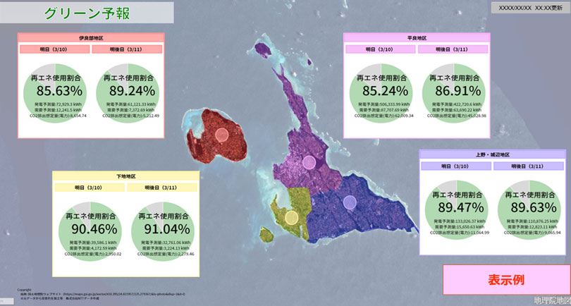 分散型再生可能エネルギー等の情報を収集・可視化・分析する実証実験について、可視化された画面上では、非常に分かりやすくリアルタイムデータを把握することができており、このデータを本市の脱炭素社会の推進やその他施策、及び島内での経済活動等にも利用できると期待しています。