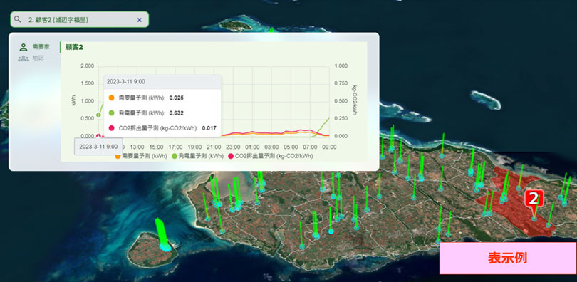 図2:<需要家単位>4D地図基盤上での予測データとCO2換算