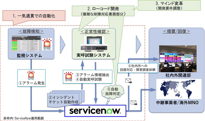 株式会社NTTドコモ(以下、NTTドコモ)と株式会社NTTデータ(以下、NTTデータ)は、NTTドコモの国際ローミングサービスの遠隔保守業務(ネットワークオペレーション業務)をServiceNow導入により自動化するゼロタッチオペレーションの初期運用を2022年4月より開始し、運用の安定性向上を図った結果、2023年5月末をもってサービス回復時間75%短縮および人為的作業ミス100%削減を達成しました。