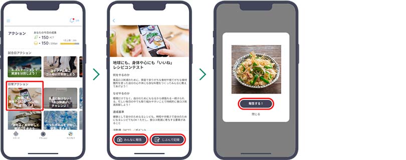 (2)日常アクション一覧から自分に合う行動を見つけて、日常的に行動してみてアプリで記録・共有