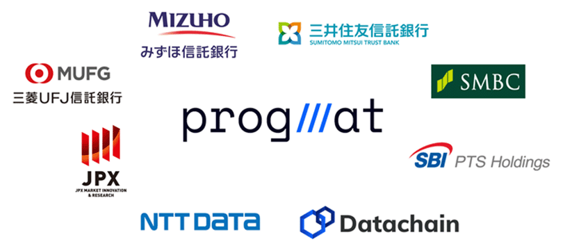 三菱UFJ信託銀行株式会社(取締役社長:長島 巌、以下 三菱UFJ信託銀行)、みずほ信託銀行株式会社(取締役社長:梅田 圭、以下 みずほ信託銀行)、三井住友信託銀行株式会社(取締役社長:大山 一也、以下三井住友信託銀行)、株式会社三井住友フィナンシャルグループ(取締役執行役社長グループCEO:太田 純、以下 三井住友FG)、SBI PTSホールディングス株式会社(代表取締役社長:小川 裕之、以下 SBI PTS)、株式会社JPX総研(代表取締役社長:宮原 幸一郎、以下 JPX総研)、株式会社NTTデータ(代表取締役社長:佐々木 裕、以下 NTTデータ)、及び株式会社Datachain(代表取締役:久田 哲史、以下 Datachain)は、デジタルアセット全般の発行・管理基盤である「Progmat(プログマ)」の開発と、「デジタルアセット共創コンソーシアム」(略称DCC、会員企業数214社)の運営を担う、「株式会社Progmat」の設立に関する株主間契約を締結することに合意しました。