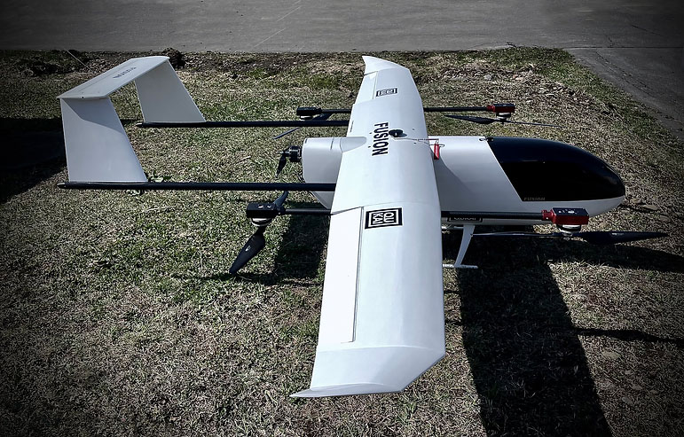 垂直離着陸が可能な固定翼機(VTOL)を使用しました。