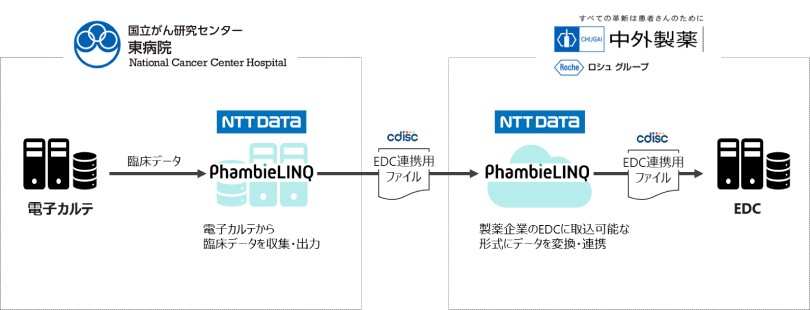 国立研究開発法人国立がん研究センター(東京都中央区、理事長:中釜 斉)東病院(千葉県柏市、病院長:土井 俊彦、以下:国立がん研究センター東病院)、中外製薬株式会社(本社:東京都中央区、代表取締役社長 CEO:奥田 修、以下:中外製薬)と株式会社NTTデータ(本社:東京都江東区、代表取締役社長:佐々木 裕、以下:NTTデータ)は、電子カルテに記載された臨床データのEDC注1への連携に関する共同研究を実施しました。