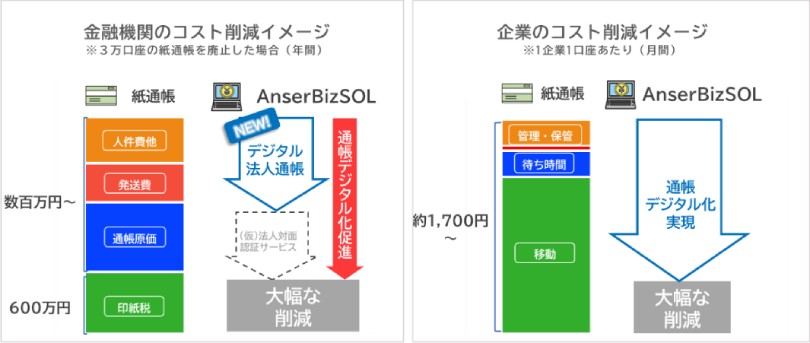 これまでAnserBizSOLでは厳格なセキュリティ基準や長年の運用ノウハウにより振込や明細照会機能等を安心・安全に提供してきました。今後は認証機能の利用シーン拡大や、データ連携強化を行うことで、事務削減に資する多様なサービスラインナップを拡充し、“法人のデジタル店舗”として金融機関や企業の事務削減、デジタル化による生産性向上に貢献します。