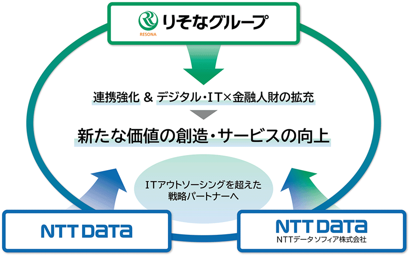 りそなHDとNTTデータソフィアの人財交流を促進させりそなグループのデジタル・IT人財の育成を強化します。あわせてシステムにおける対応の高度化も図ることで、中長期的なデジタル戦略の実現性を高め、お客さまのこまりごとの解決力を高めます。