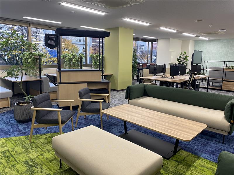 NTTデータ東北のオフィスは「社員が「活きる」オフィスレイアウト」をテーマにしています。NTTデータ東北の企業理念である「地域に生きる、活きていく。」の実現へ、社員がより活きる(活躍できる)オフィスを目指し、構築しています。