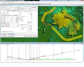PANADESは、国際基準に基づいて航空機の飛行する経路の設計を行うためのシステムです。飛行経路の設計においては、設計する箇所ごとに航空機性能や地形・人工障害物・気候条件などを考慮したうえで、航空機の特性に応じた各種パラメーター計算や複雑な幾何計算など、緻密な計算を正確に行う必要があります。PANADESは、こうした飛行経路設計業務における複雑な計算の多くを自動的に処理する機能を実装しており、できるだけ少ないパラメーター入力で飛行区域が自動的に作成できることが特長です。これにより飛行経路の設計作業時間の短縮や、設計結果の品質および信頼性の確保、飛行経路の安全性向上を図ることができます。