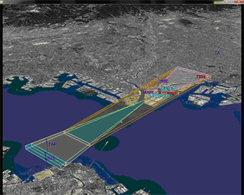 PANADESは、国際基準に基づいて航空機の飛行する経路の設計を行うためのシステムです。飛行経路の設計においては、設計する箇所ごとに航空機性能や地形・人工障害物・気候条件などを考慮したうえで、航空機の特性に応じた各種パラメーター計算や複雑な幾何計算など、緻密な計算を正確に行う必要があります。PANADESは、こうした飛行経路設計業務における複雑な計算の多くを自動的に処理する機能を実装しており、できるだけ少ないパラメーター入力で飛行区域が自動的に作成できることが特長です。これにより飛行経路の設計作業時間の短縮や、設計結果の品質及び信頼性の確保、飛行経路の安全性向上を図ることができます。