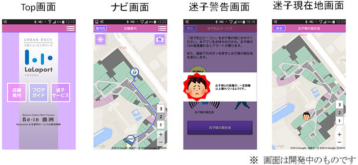 - 迷子用ビーコンを持つお子さまが一定以上離れた場合にアラームを発する「迷子サービス」や「迷子の現在地検索」など、施設来訪者の安全性を向上させる位置情報の活用についての検証