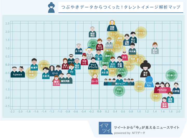 図3:つぶやきデータからつくった!タレントイメージ解析マップ