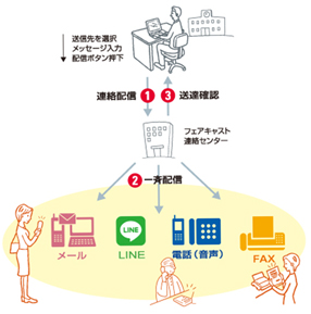 「FairCast学校連絡網」は、全国1,000校37万人(2017年9月現在)が利用しており、他社サービスにはないメール・音声(固定電話/携帯電話等)・FAXへの一斉配信、および確認が取れるまで自動的に配信する追掛配信を活用し、学校からの情報を"すべての人に迅速かつ正確に"伝達することで、児童や生徒、保護者の安心をサポートする一斉連絡網サービスです。