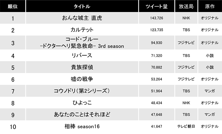 テレビドラマではオリジナル脚本作品が6つランクイン。