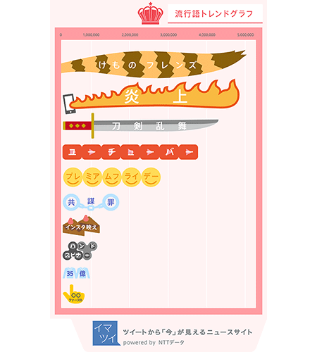 Twitter上の話題量ランキング『イマツイ ツイート大賞2017』を発表 ~2017年は「けもフレ」に「ドラえもん」、「ホンネTV」など、国産コンテンツが話題を牽引!~