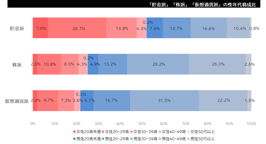 図2:「貯金派」「株派」「仮想通貨派」の性年代構成比