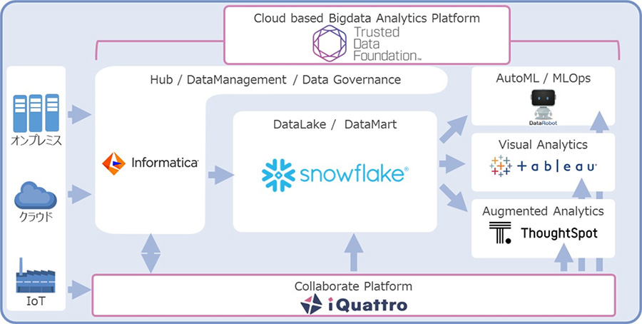 図2:「Trusted Data Foundation」と「iQuattro」と連携した「AI・データの民主化」プラットフォームイメージ