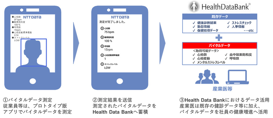 スマートフォンによる遠隔・非接触でのバイタルデータ取得の実証開始 ~Health Data Bank®におけるデータ取得機能追加により企業の社員健康管理の支援を強化~