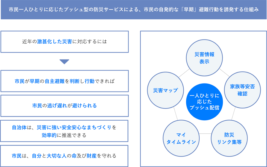 ~市民一人ひとりに応じたプッシュ型の防災サービスにより、市民の自発的な「早期」避難行動を誘発する仕組みを実現~