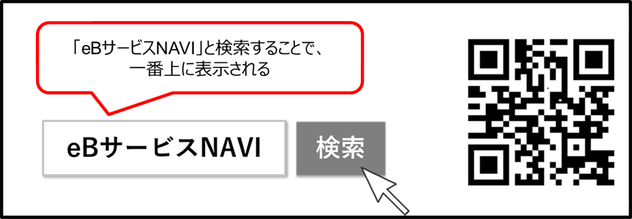 図2:「eBサービスNAVI」へのアクセス方法検索方法、QRコード