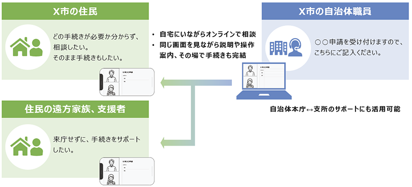 オンライン相談窓口で住民手続きをサポートする実証実験を複数自治体と開始