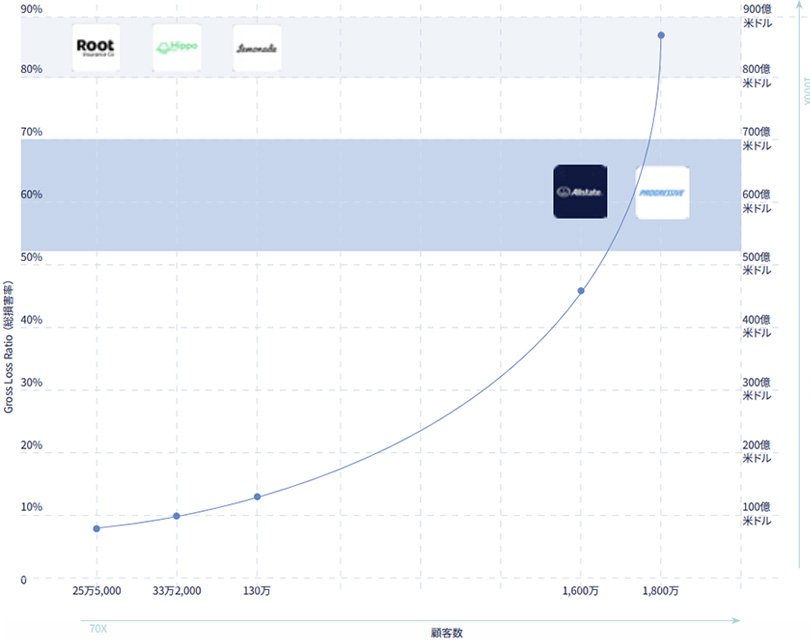 世界的なインフレーションや自然災害の増加により、保険業界の引受収支が大幅に悪化している。収支改善のために、新たな引受モデルによる販売コストの削減、価格競争力の向上、顧客エンゲージメント向上が期待されています。新たな引受モデルを提供するInsurtechでは、より大きな顧客基盤持つほど、より良い損害率を持つ傾向が見られます。
