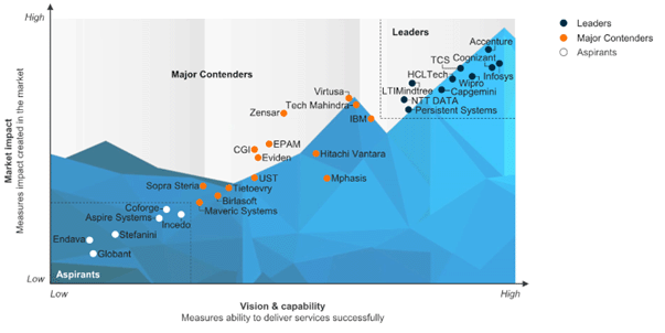 今回リーダーとして評価されたNTTデータグループを含む10社のITサービスプロバイダーは、顧客へのエンドツーエンドのモダナイゼーション支援やコスト削減の取り組みにより顧客へ価値提供を行うことで高い評価を得ています。