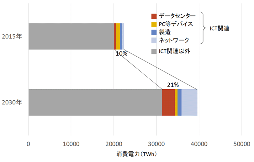 On Global Electricity Usage of Communication Technology: Trends to 2030を基に当社で作成