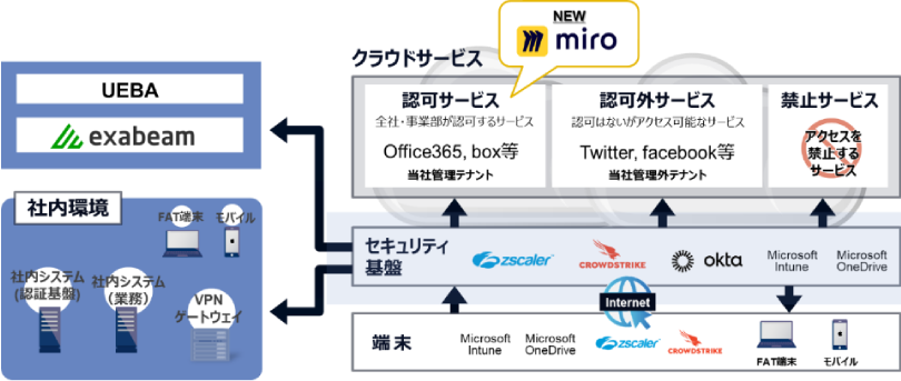Security)製品のセキュリティーサービスと組み合わせることで、セキュアに端末からMiroへアクセスすることが可能です。BMWSが提供するセキュリティー製品は、クラウド型のセキュリティーサービスであり、常に世界中の最新情報に基づいてアップデートされるため、高いセキュリティーレベルが担保されています。